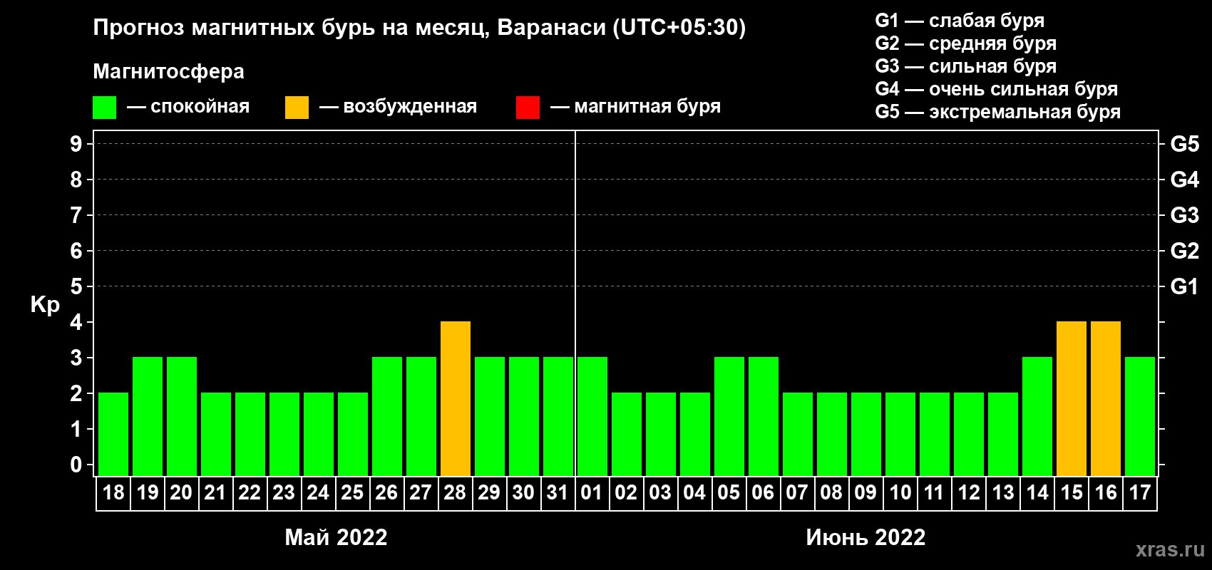 Прогноз магнитных бурь Варанаси — 18 мая 2022 года