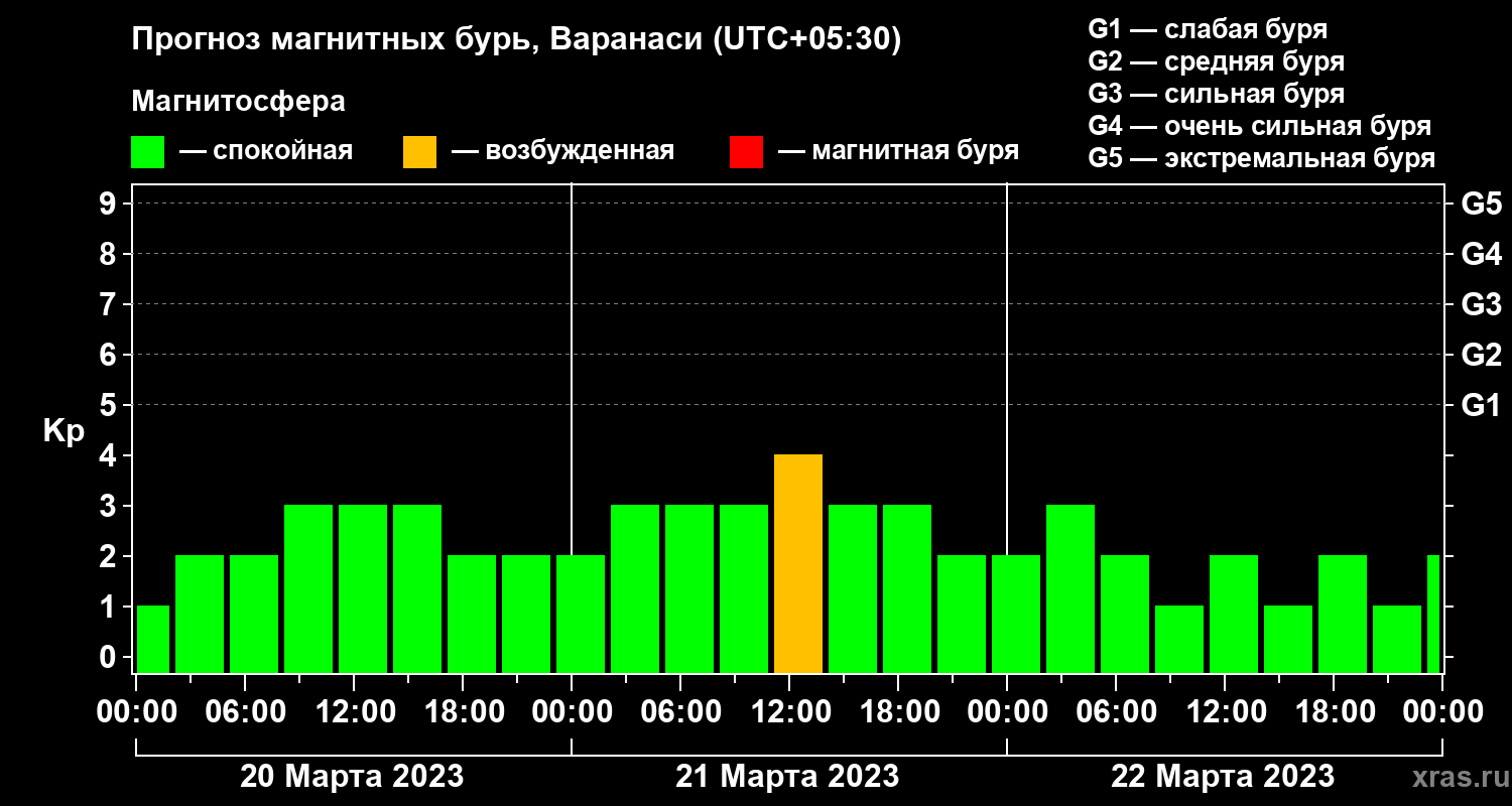 Прогноз магнитных бурь Варанаси — 20 марта 2023 года