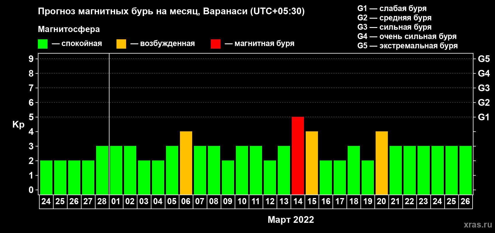 Прогноз магнитных бурь Варанаси — 24 февраля 2022 года