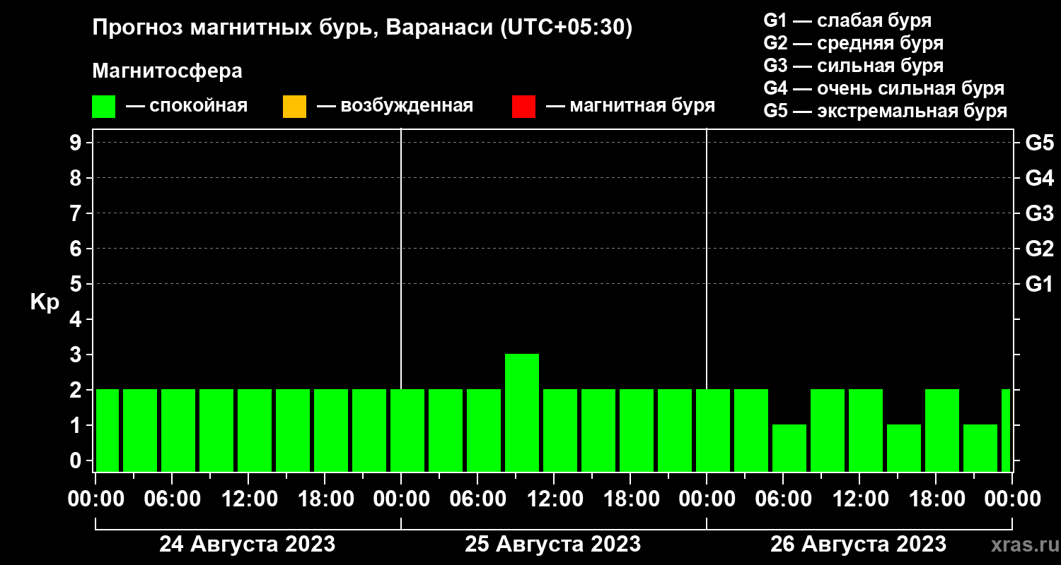 Прогноз магнитных бурь Варанаси — 24 августа 2023 года