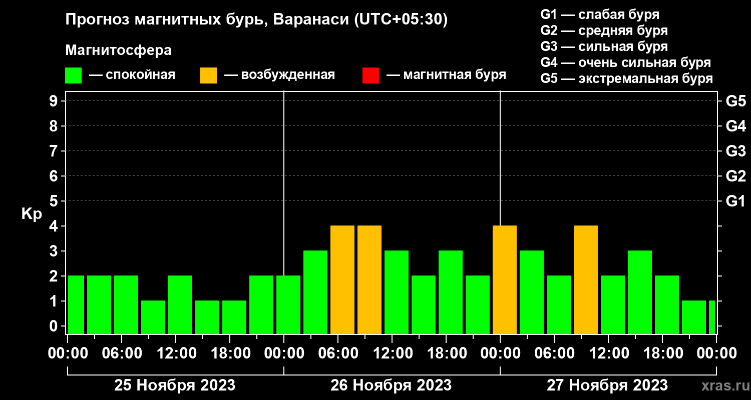 Прогноз магнитных бурь Варанаси — 25 ноября 2023 года