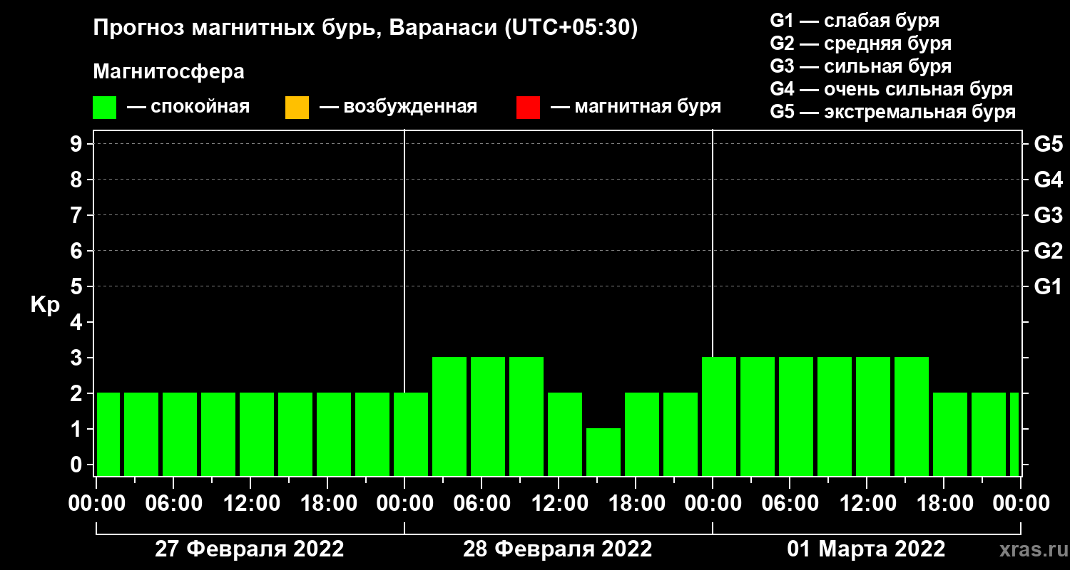 Прогноз магнитных бурь Варанаси на 27 февраля 2022 года