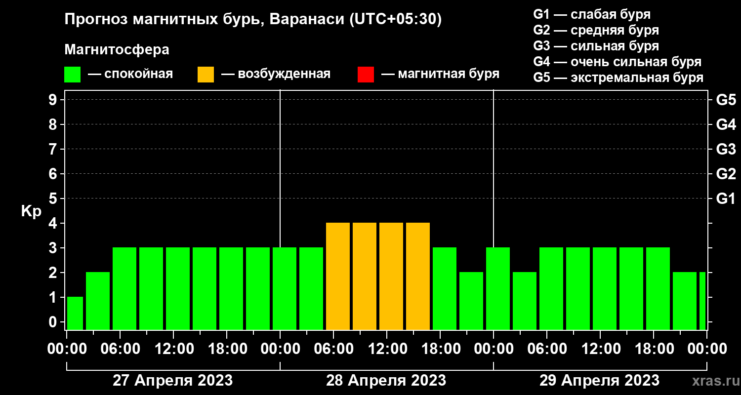 Прогноз магнитных бурь Варанаси на 27 апреля 2023 года