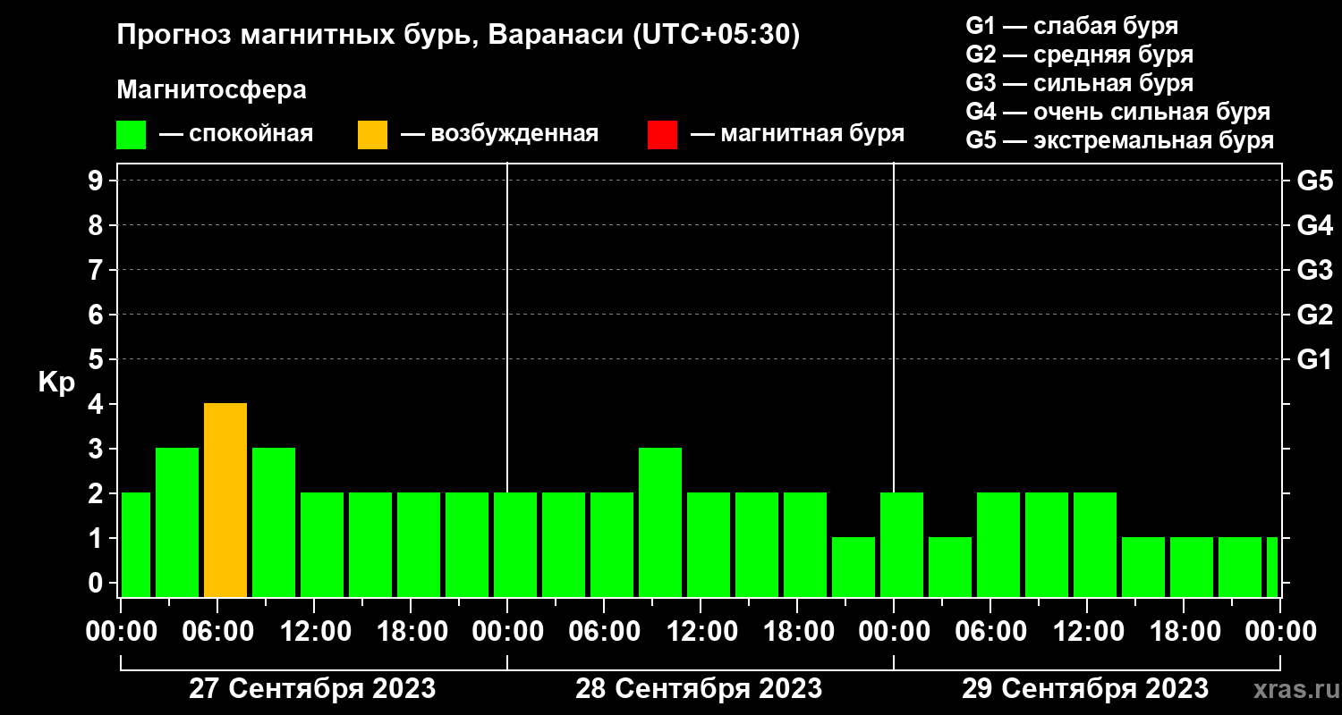 Прогноз магнитных бурь Варанаси — 27 сентября 2023 года