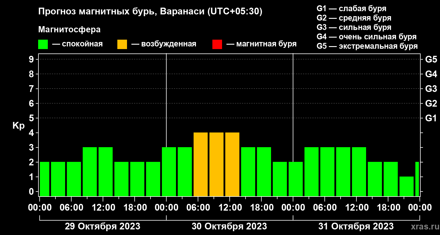 Прогноз магнитных бурь Варанаси — 29 октября 2023 года
