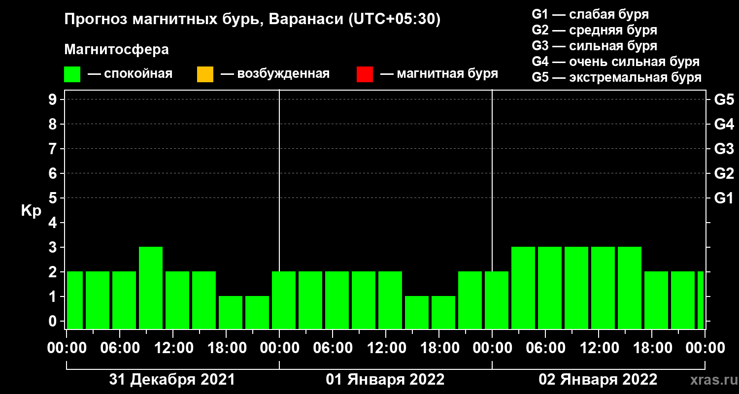 Прогноз магнитных бурь Варанаси на 31 декабря 2021 года