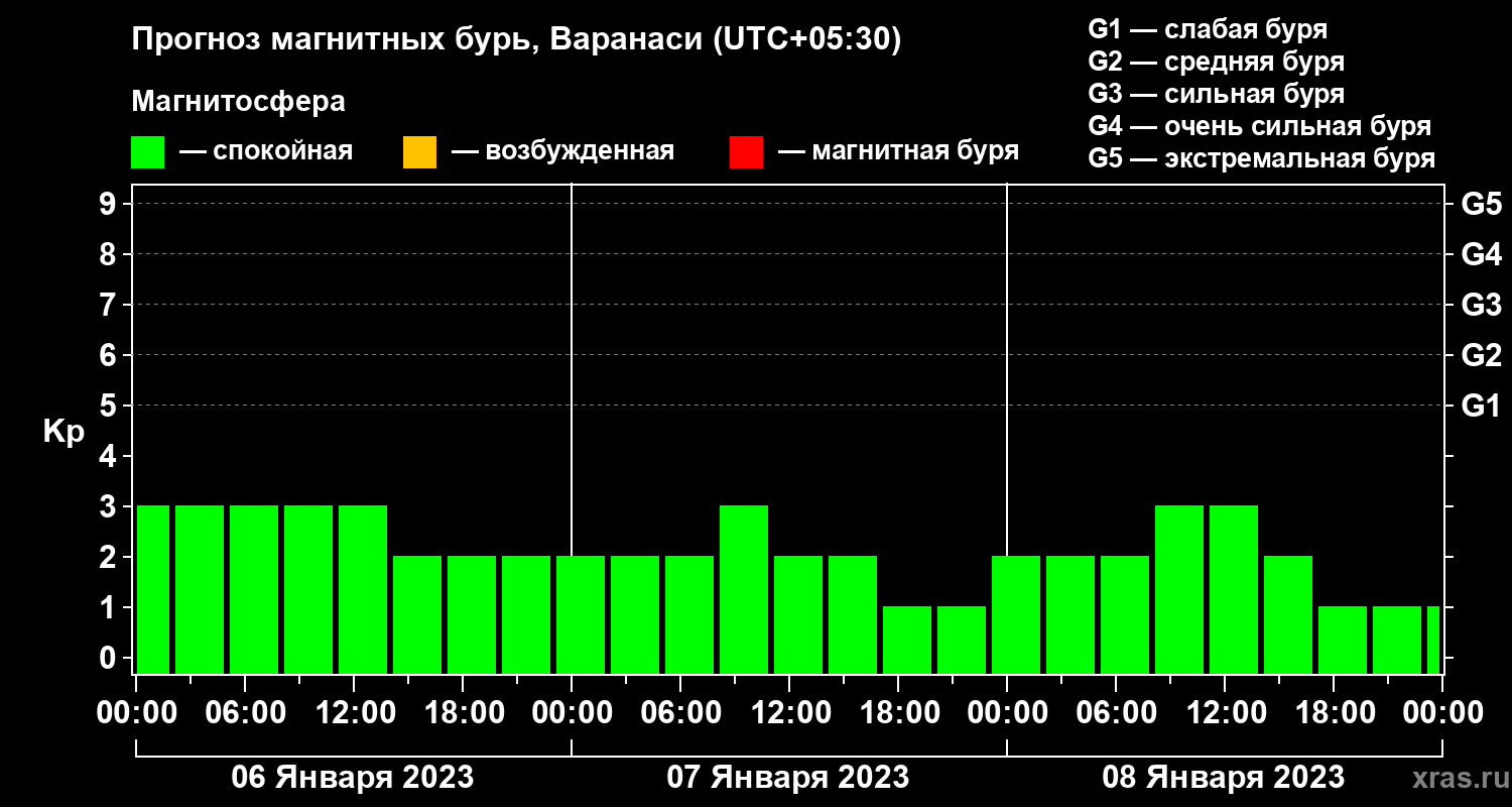 Прогноз магнитных бурь Варанаси на 6 января 2023 года