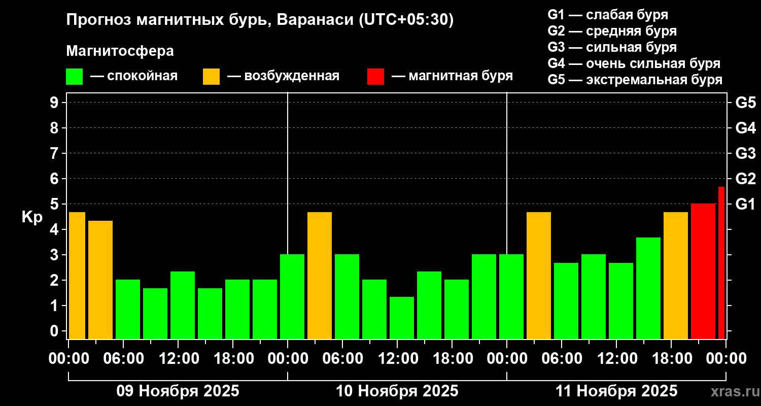 Прогноз магнитных бурь Варанаси — 9 ноября 2025 года