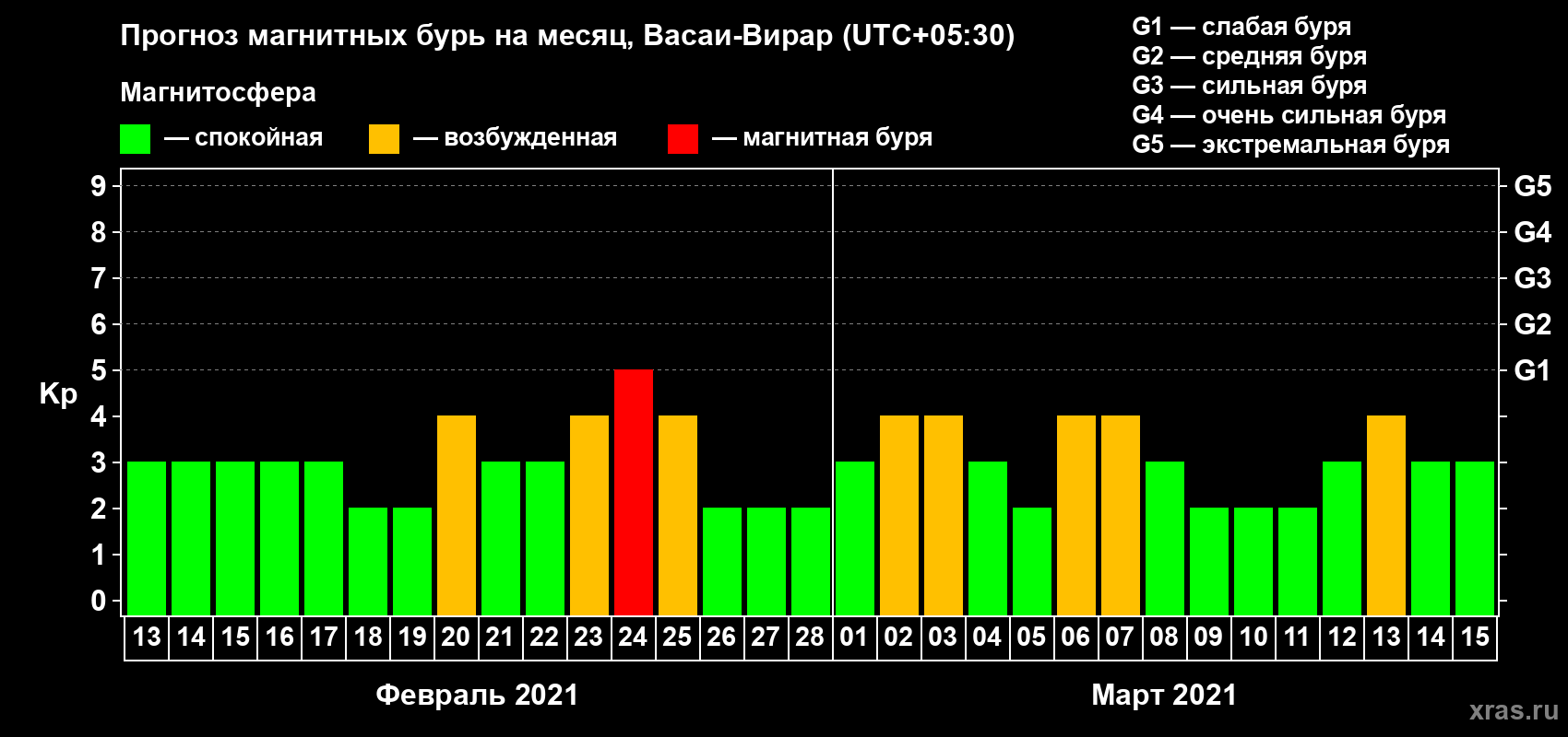 Прогноз магнитных бурь в Васаи-Вираре — 13 февраля 2021 года