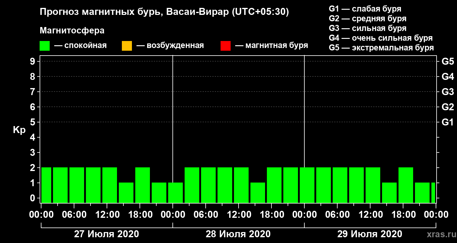 Прогноз магнитных бурь в Васаи-Вираре на 27 июля 2020 года