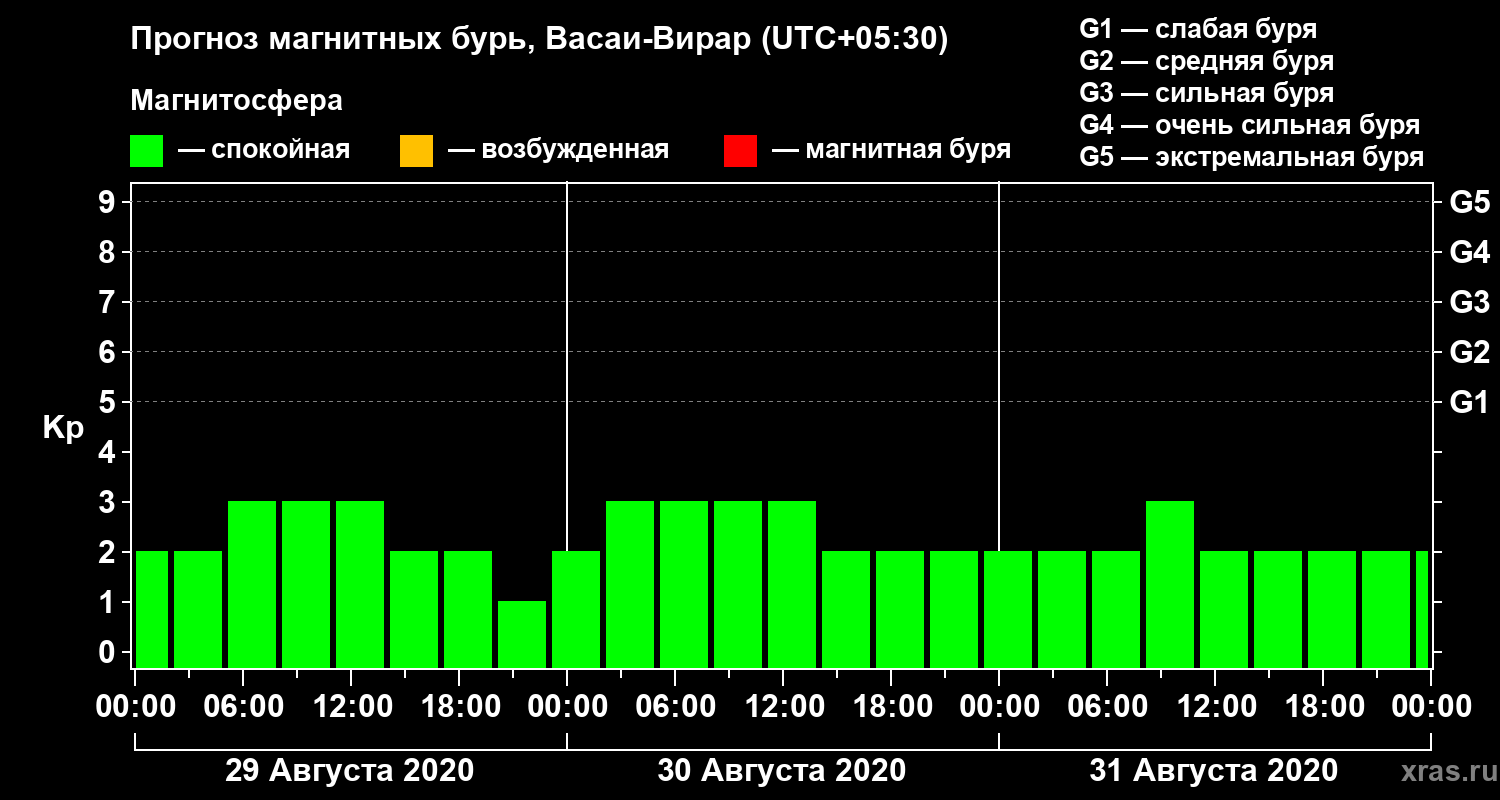 Прогноз магнитных бурь в Васаи-Вираре — 29 августа 2020 года