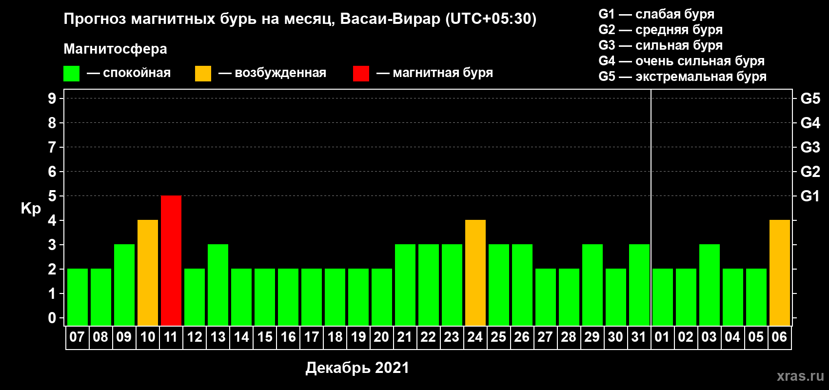 Прогноз магнитных бурь в Васаи-Вираре — 7 декабря 2020 года