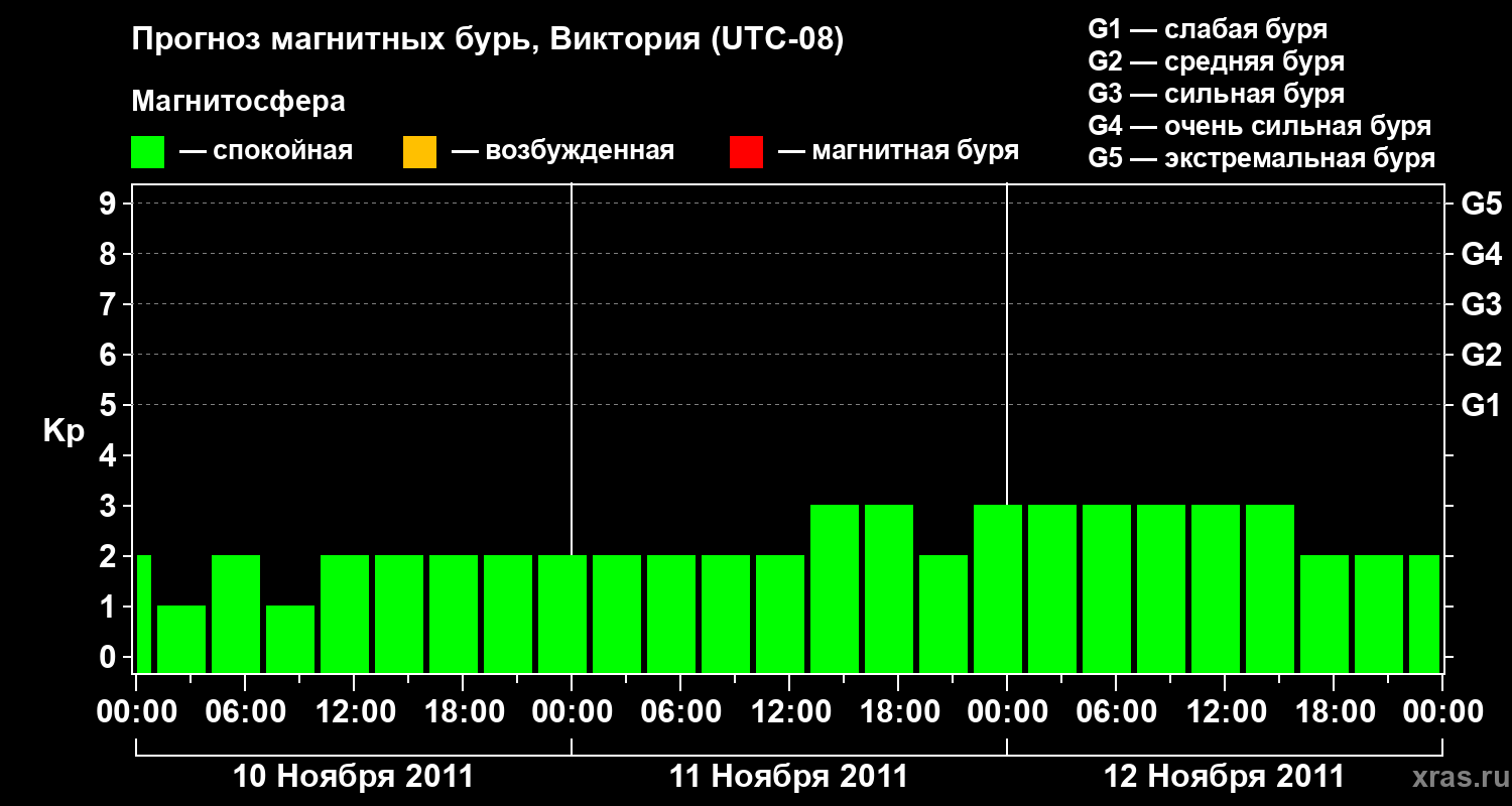 Прогноз магнитных бурь в Виктории — 10 ноября 2011 года