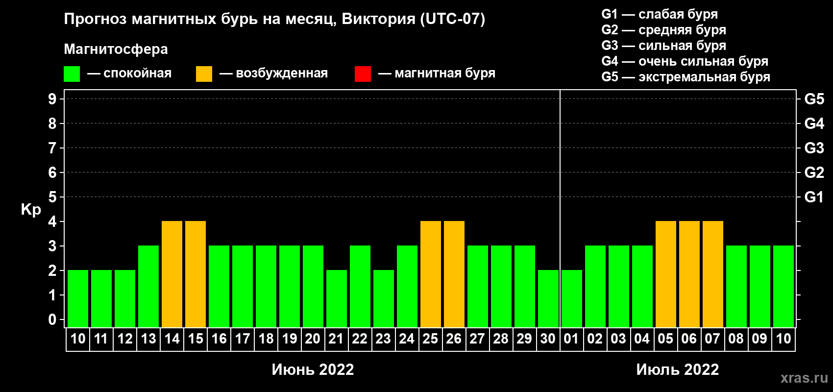 Прогноз магнитных бурь в Виктории — 10 июня 2022 года