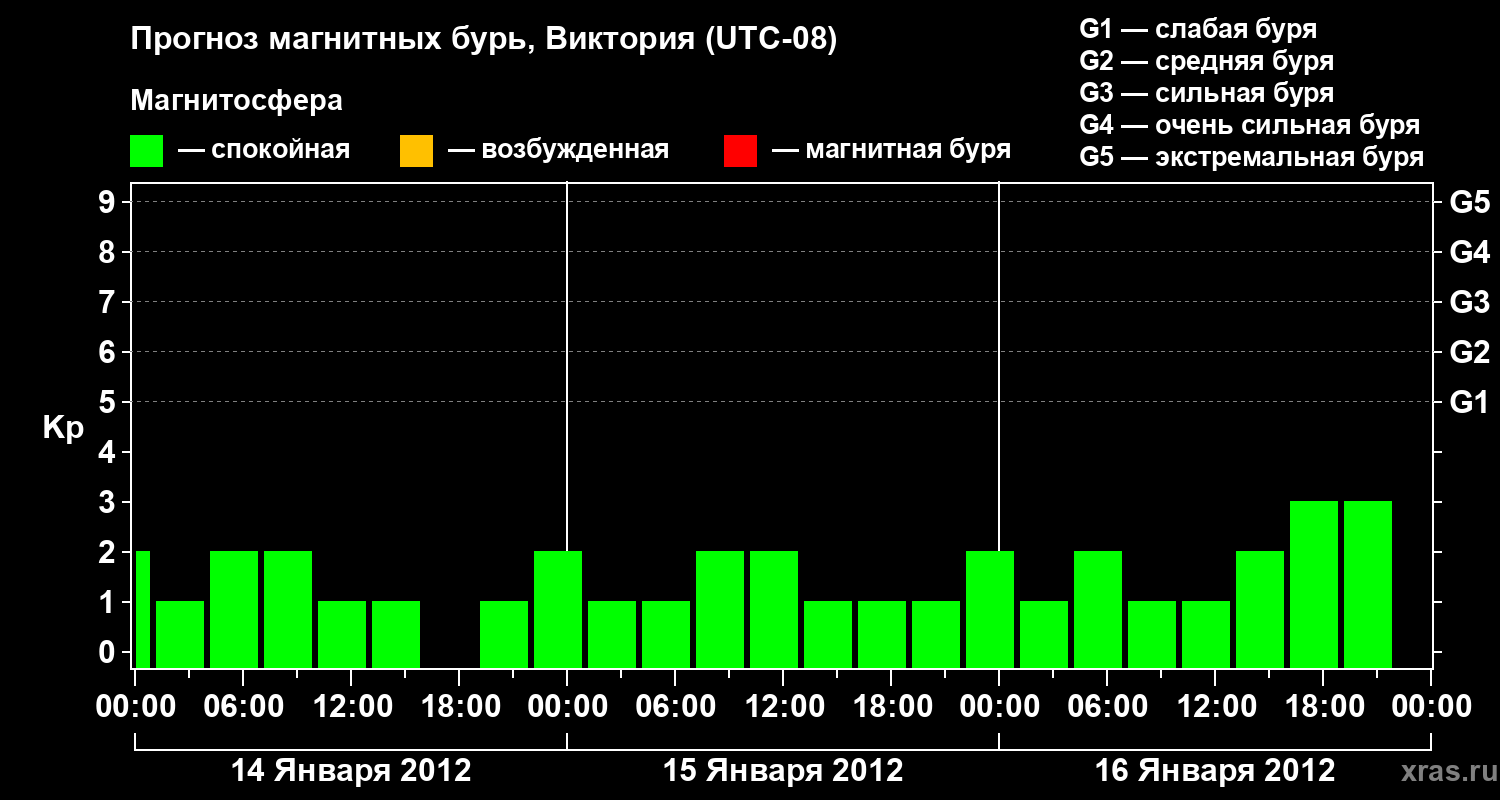 Прогноз магнитных бурь в Виктории на 14 января 2012 года