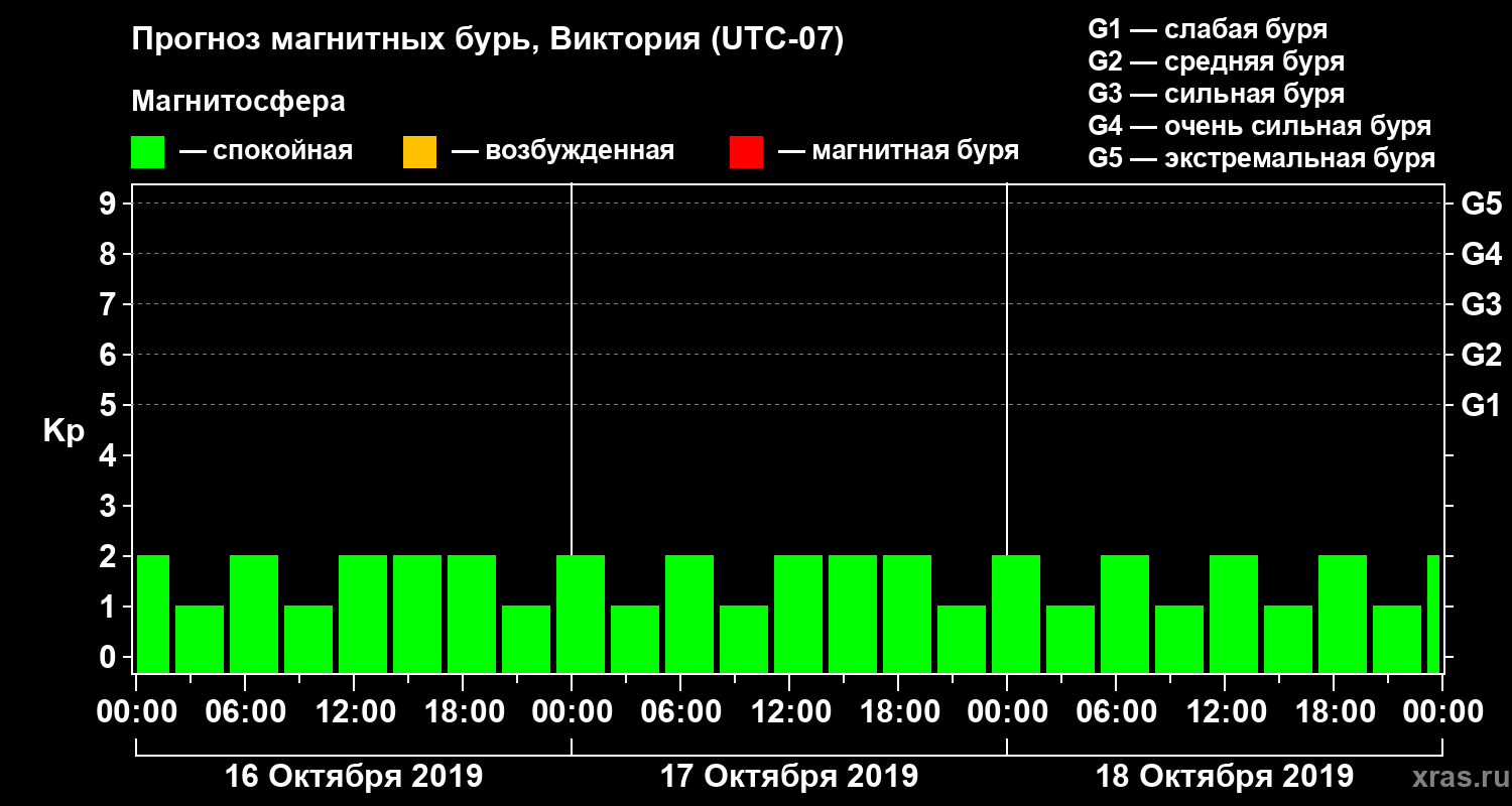 Прогноз магнитных бурь в Виктории на 16 октября 2019 года