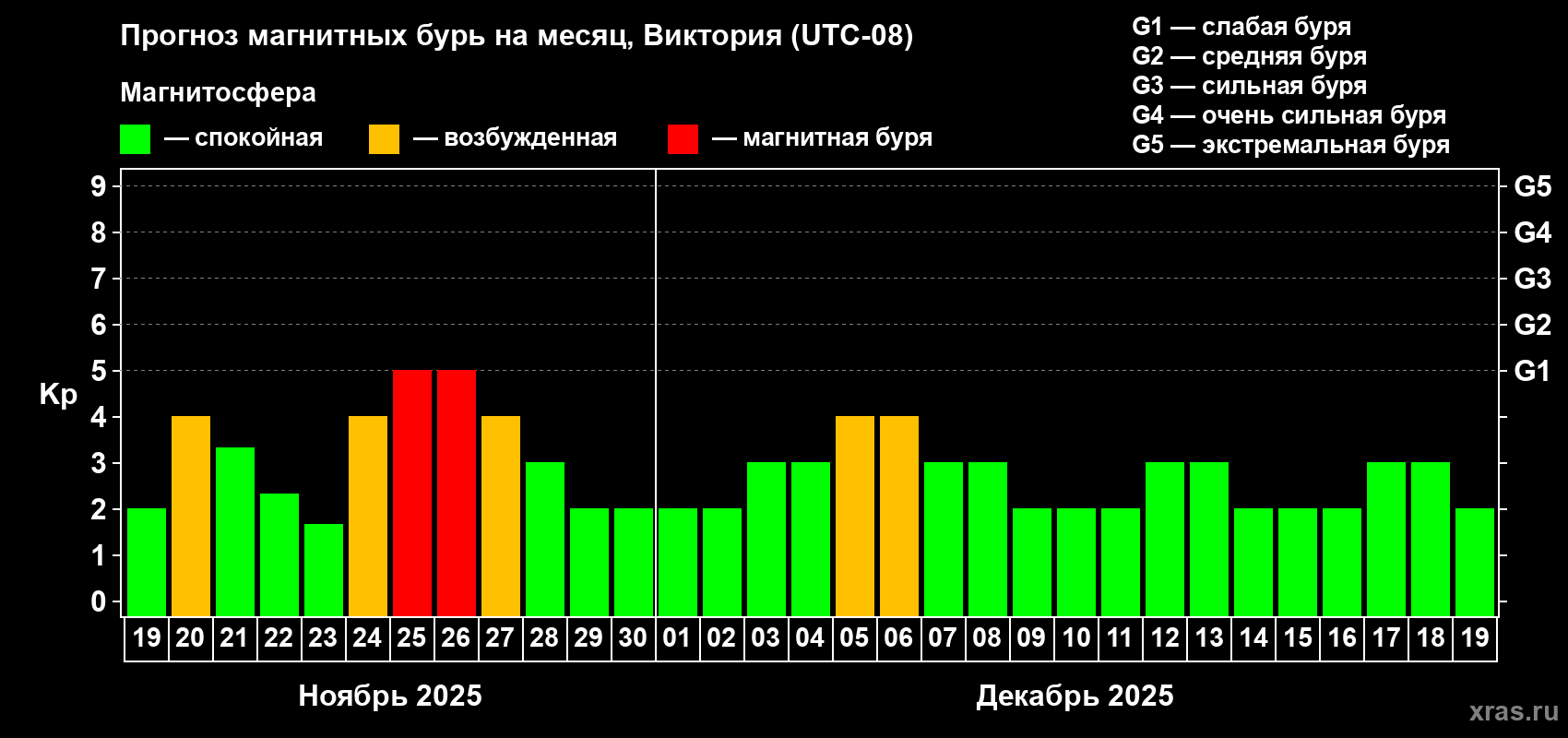 Прогноз магнитных бурь в Виктории — 19 ноября 2025 года