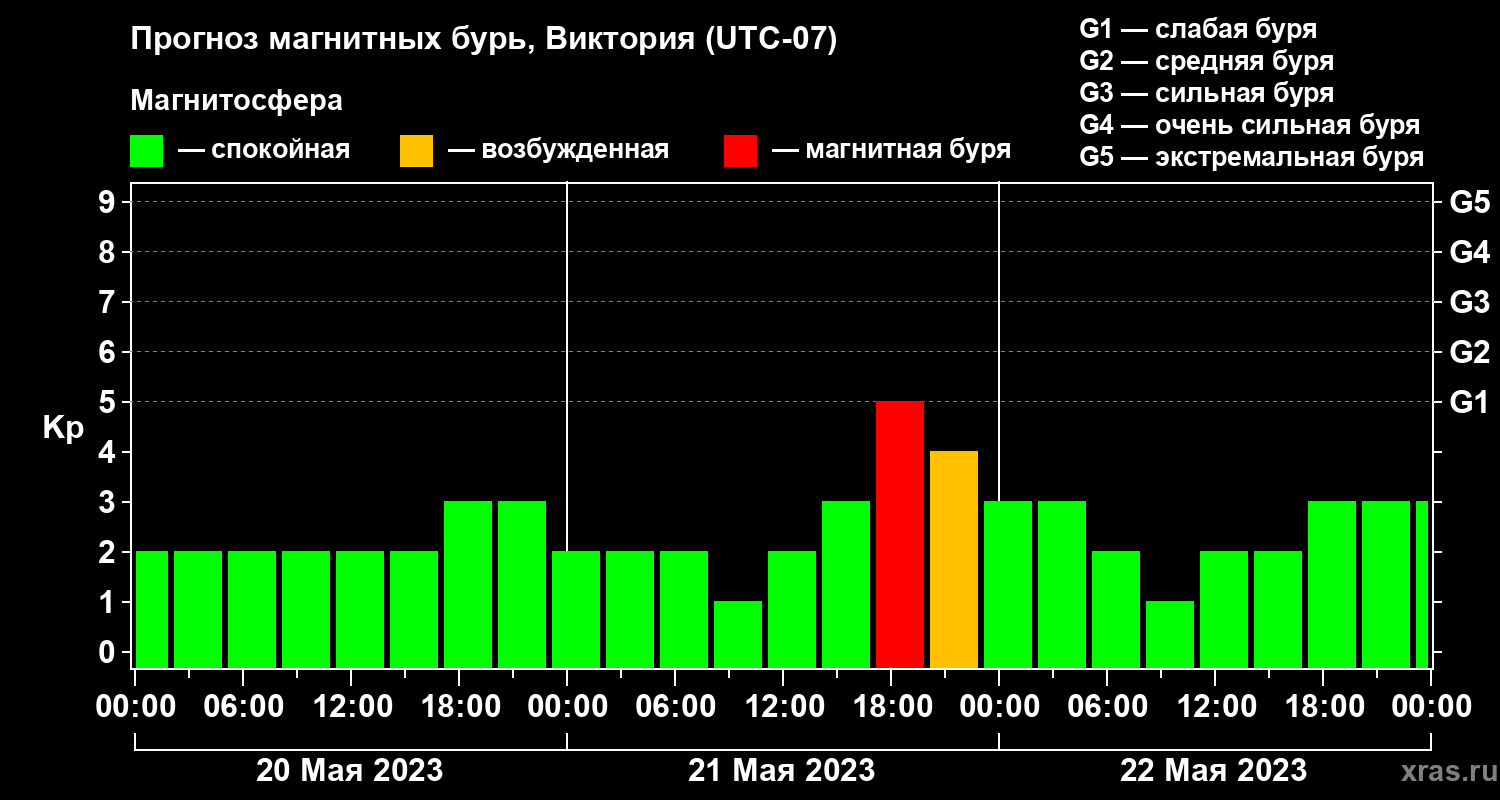 Прогноз магнитных бурь в Виктории на 20 мая 2023 года