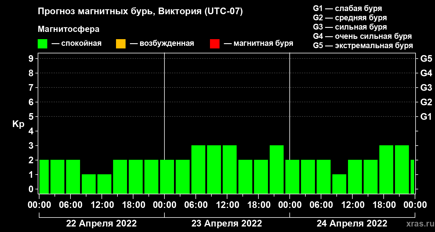 Прогноз магнитных бурь в Виктории на 22 апреля 2022 года