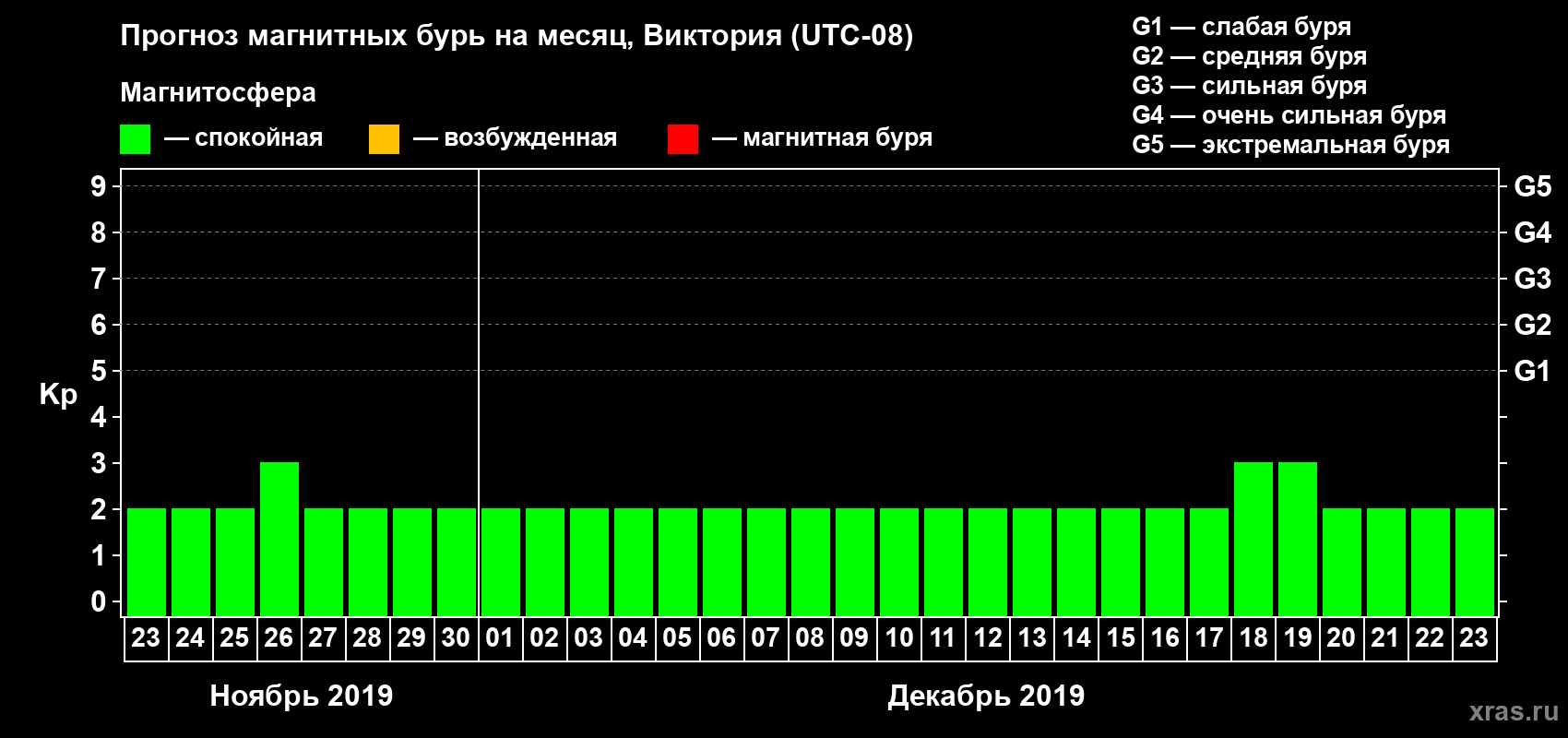 Прогноз магнитных бурь в Виктории — 23 ноября 2019 года