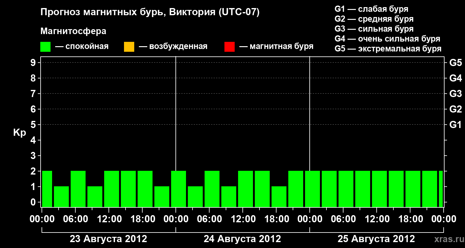 Прогноз магнитных бурь в Виктории на 23 августа 2012 года