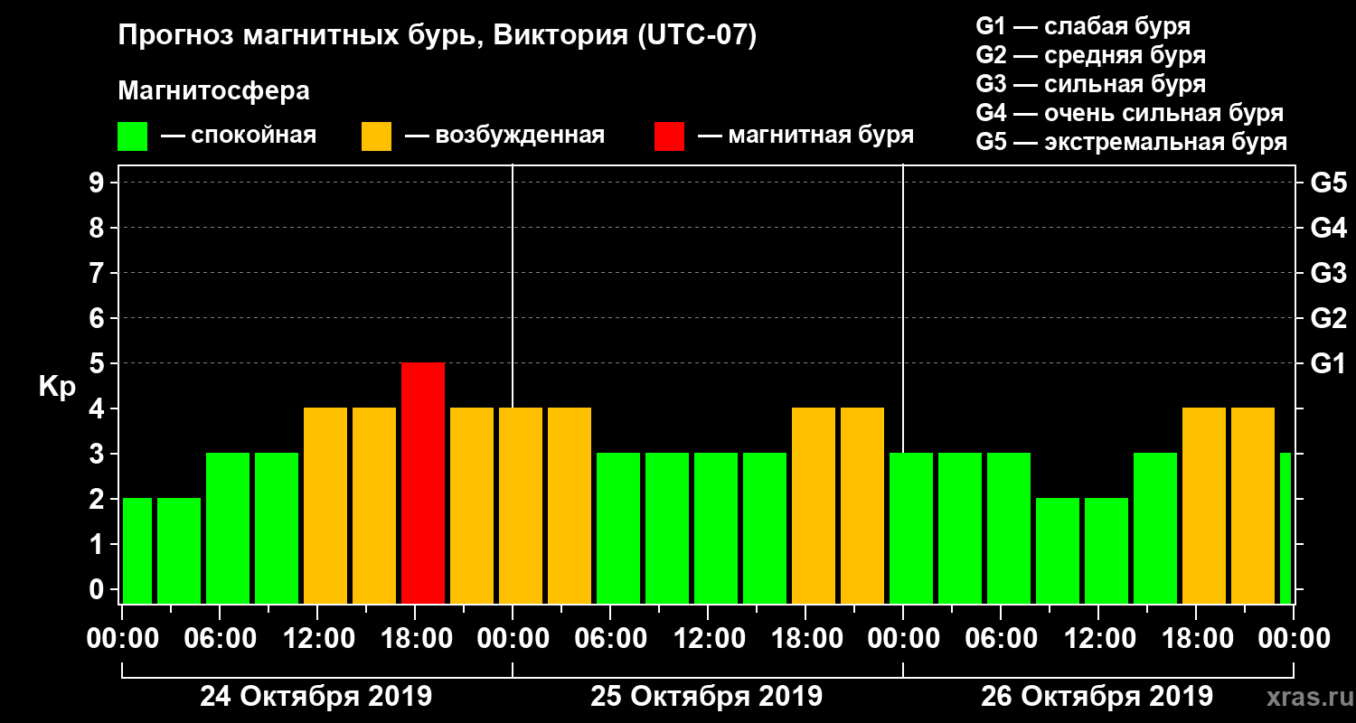Прогноз магнитных бурь в Виктории на 24 октября 2019 года
