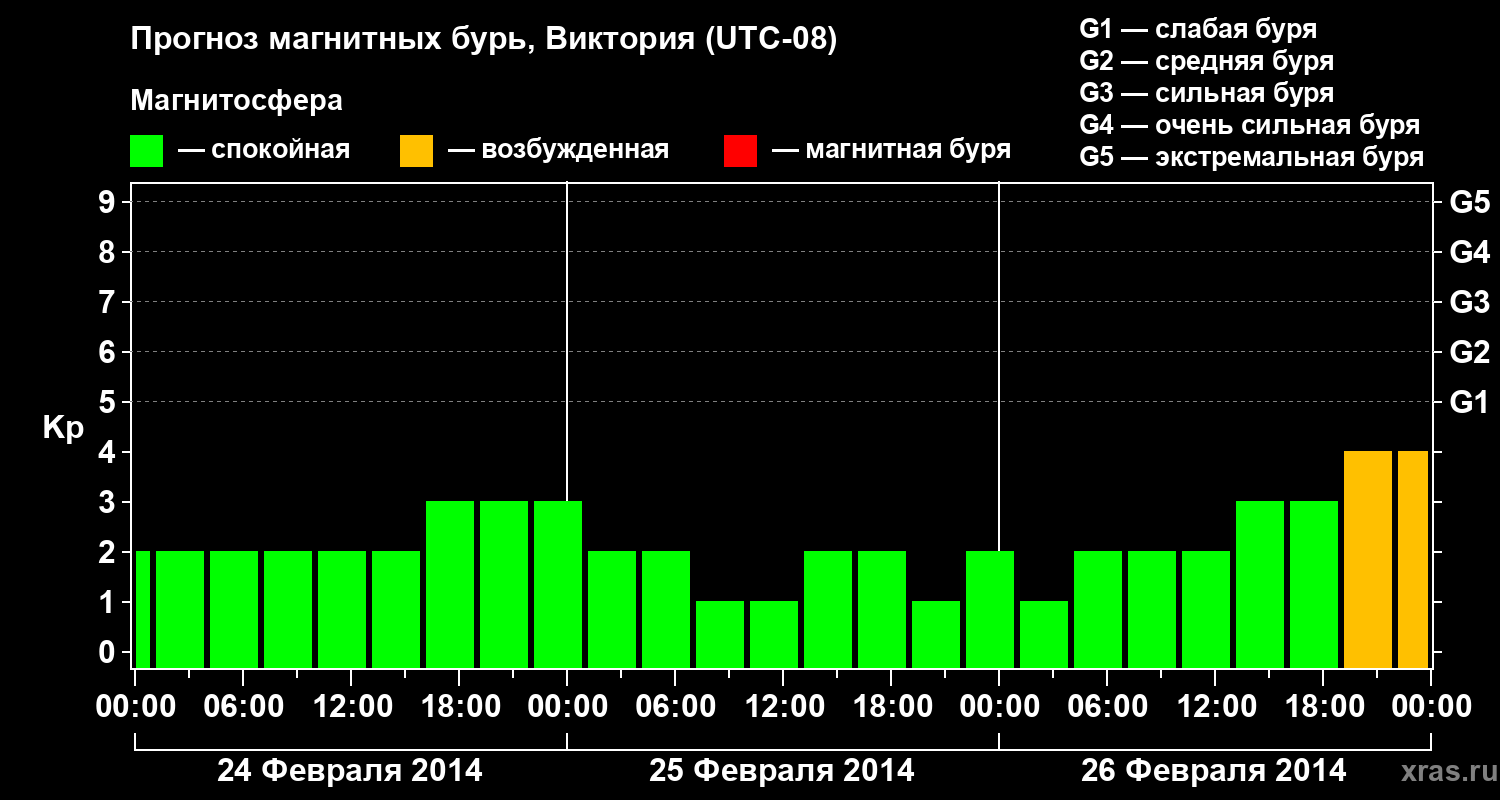 Прогноз магнитных бурь в Виктории на 24 февраля 2014 года
