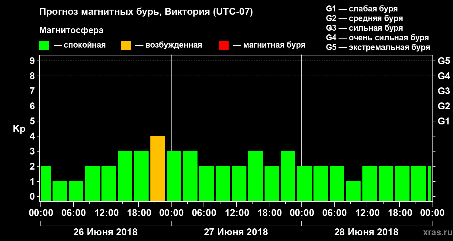 Прогноз магнитных бурь в Виктории на 26 июня 2018 года