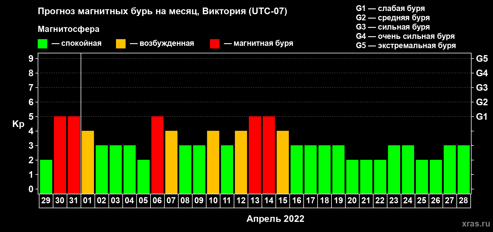 Прогноз магнитных бурь в Виктории на 29 марта 2022 года