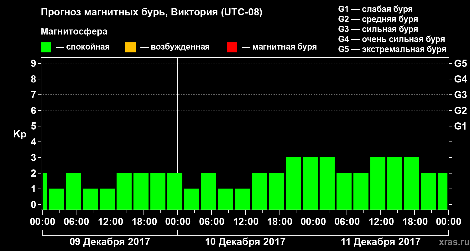 Прогноз магнитных бурь в Виктории на 9 декабря 2017 года