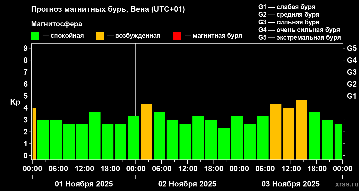 Прогноз магнитных бурь в Вене — 1 ноября 2025 года