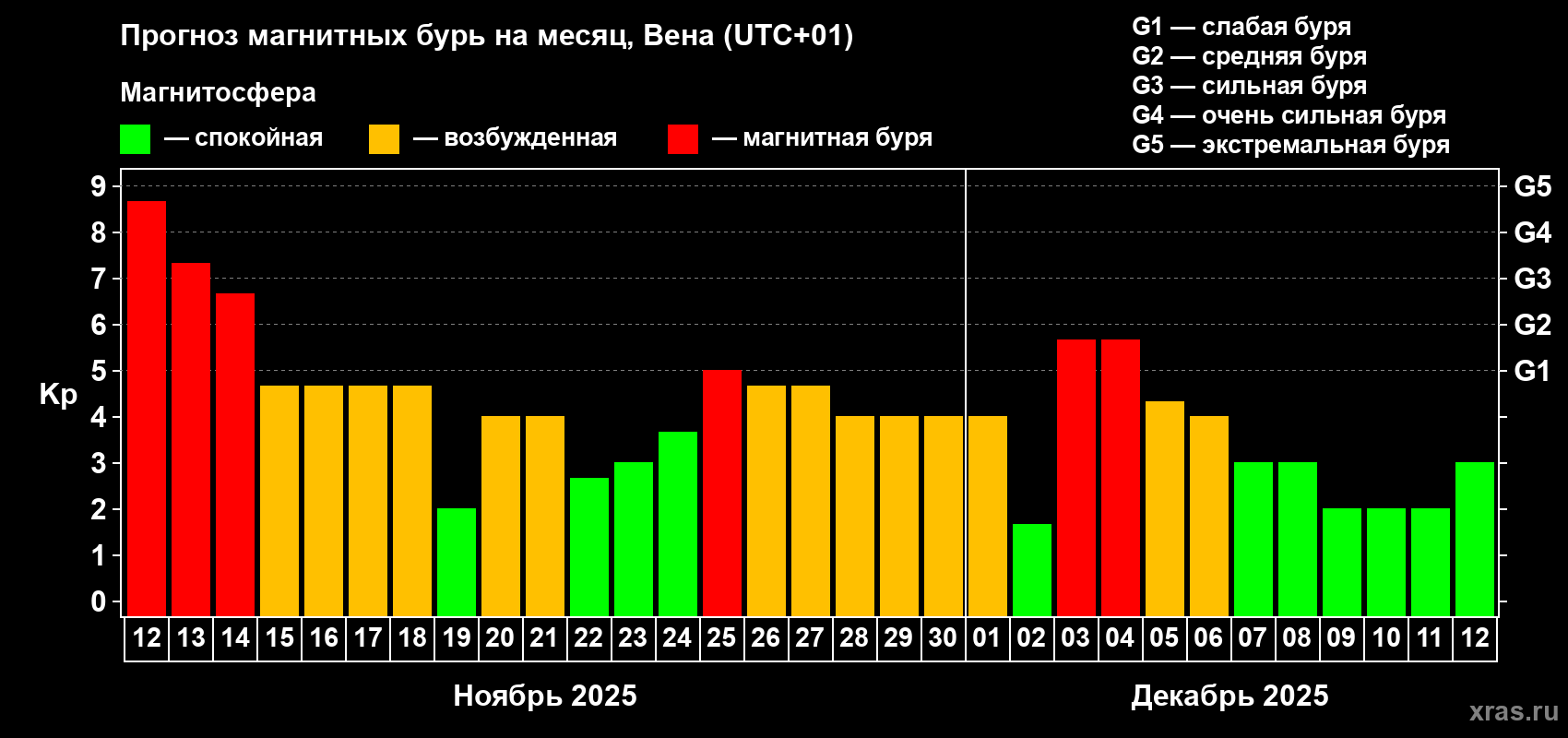 Прогноз магнитных бурь в Вене — 12 ноября 2025 года