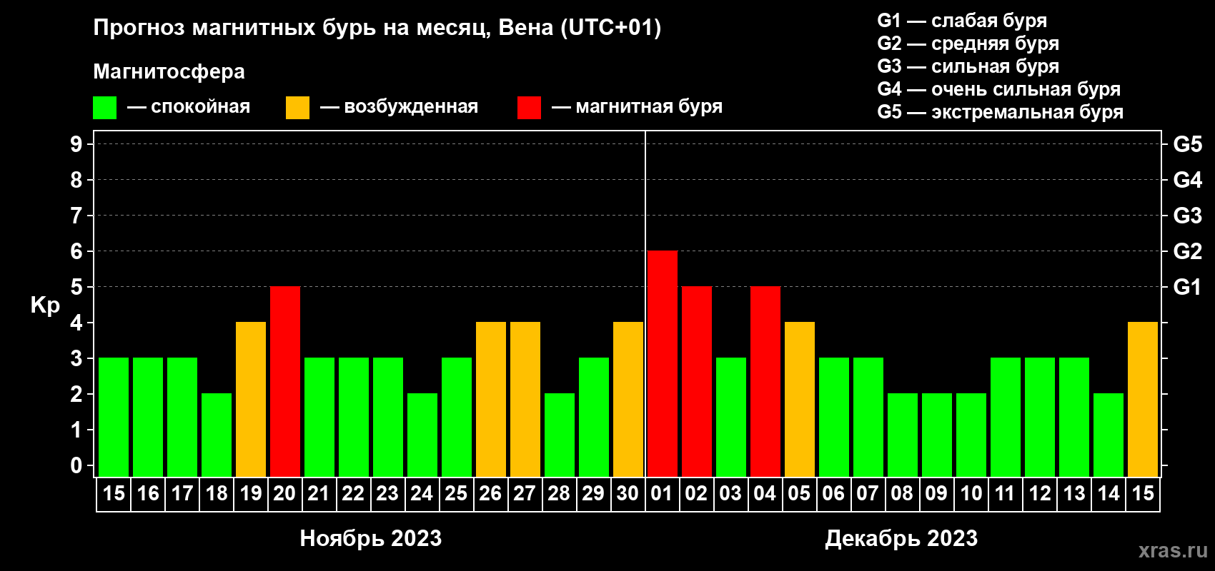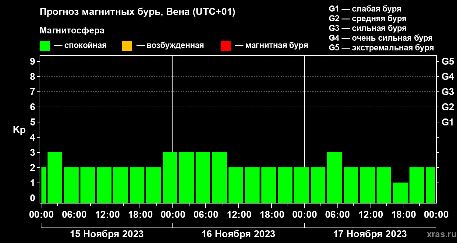 Прогноз магнитных бурь в Вене — 15 ноября 2023 года