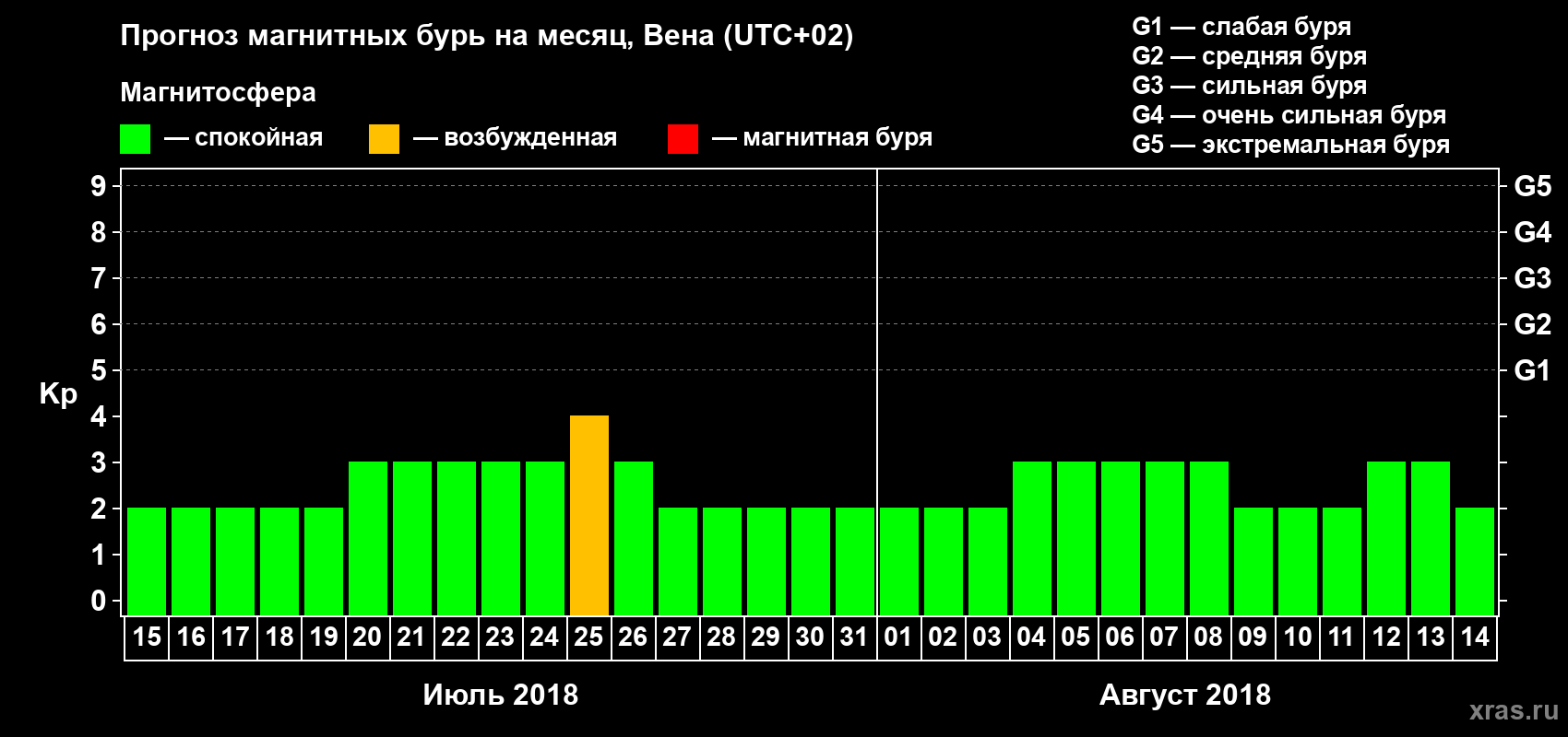 Прогноз магнитных бурь в Вене — 15 июля 2018 года