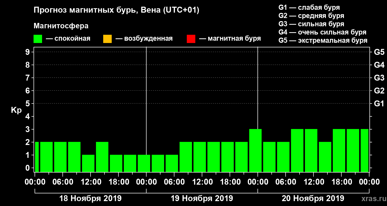 Прогноз магнитных бурь в Вене — 18 ноября 2019 года