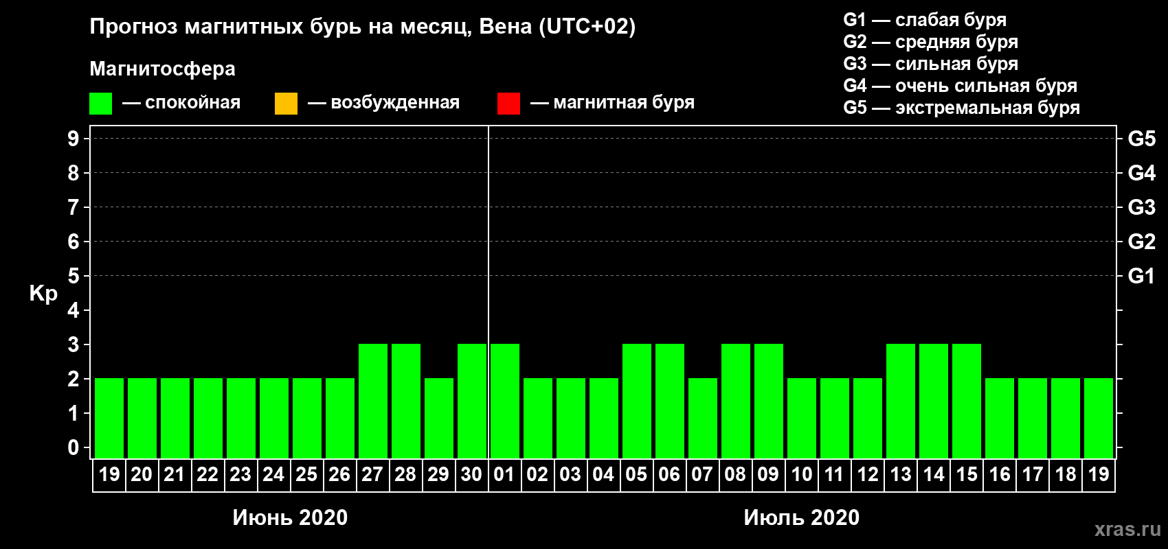 Прогноз магнитных бурь в Вене — 19 июня 2020 года