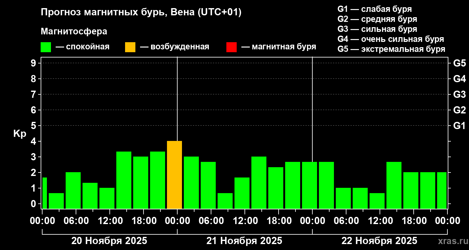Прогноз магнитных бурь в Вене — 20 ноября 2025 года