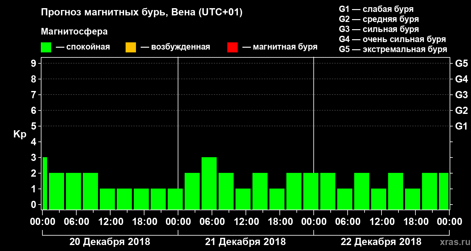 Прогноз магнитных бурь в Вене — 20 декабря 2018 года