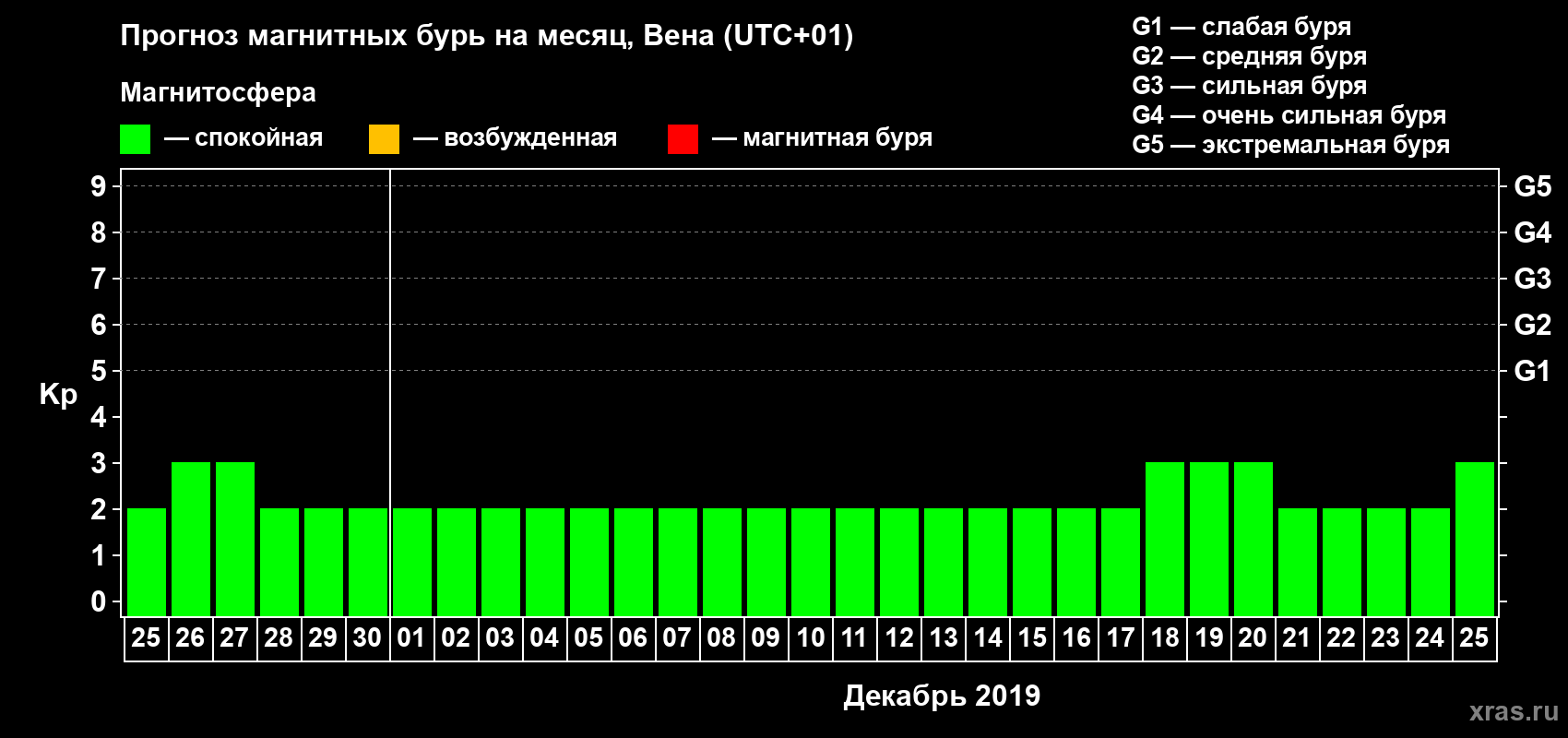 Прогноз магнитных бурь в Вене — 25 ноября 2019 года