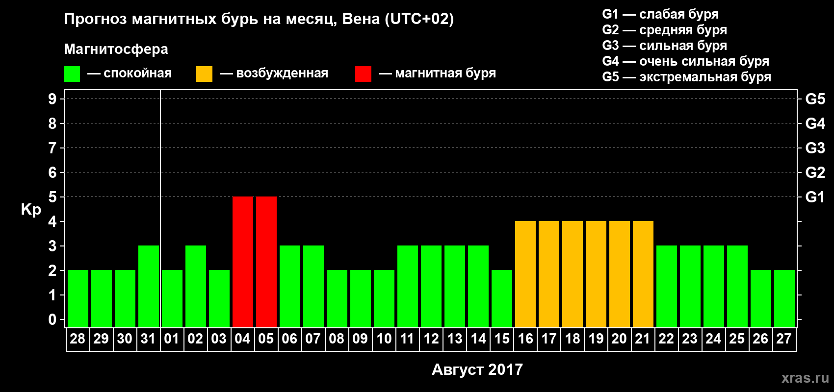 Прогноз магнитных бурь в Вене — 28 июля 2017 года
