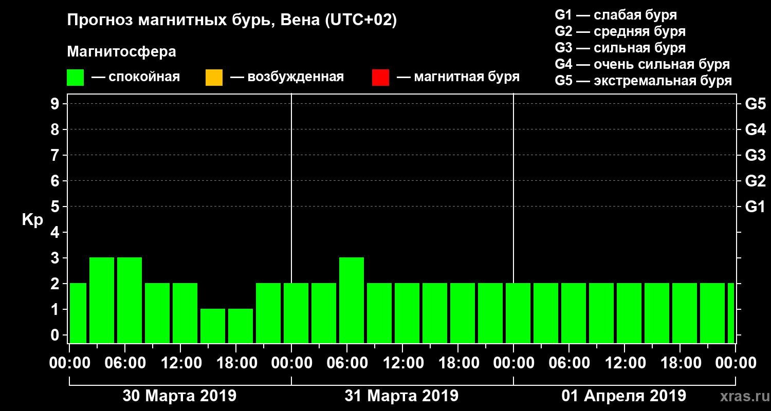 Прогноз магнитных бурь в Вене — 30 марта 2019 года