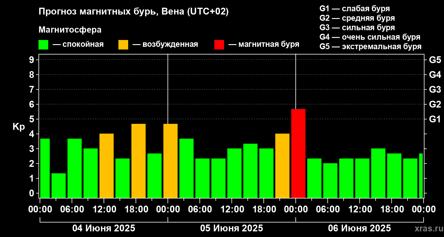 Прогноз магнитных бурь в Вене — 4 июня 2025 года