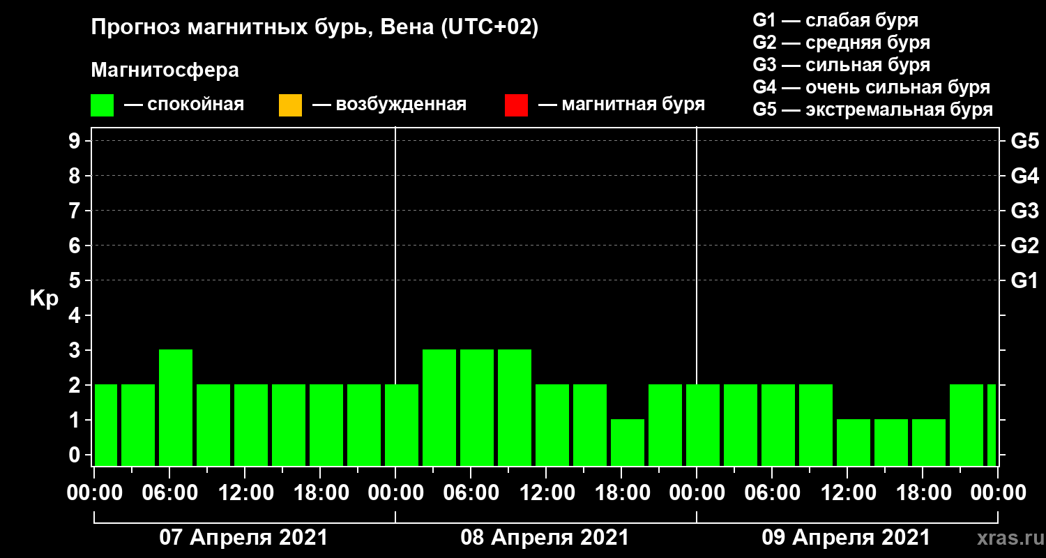 Прогноз магнитных бурь в Вене — 7 апреля 2021 года