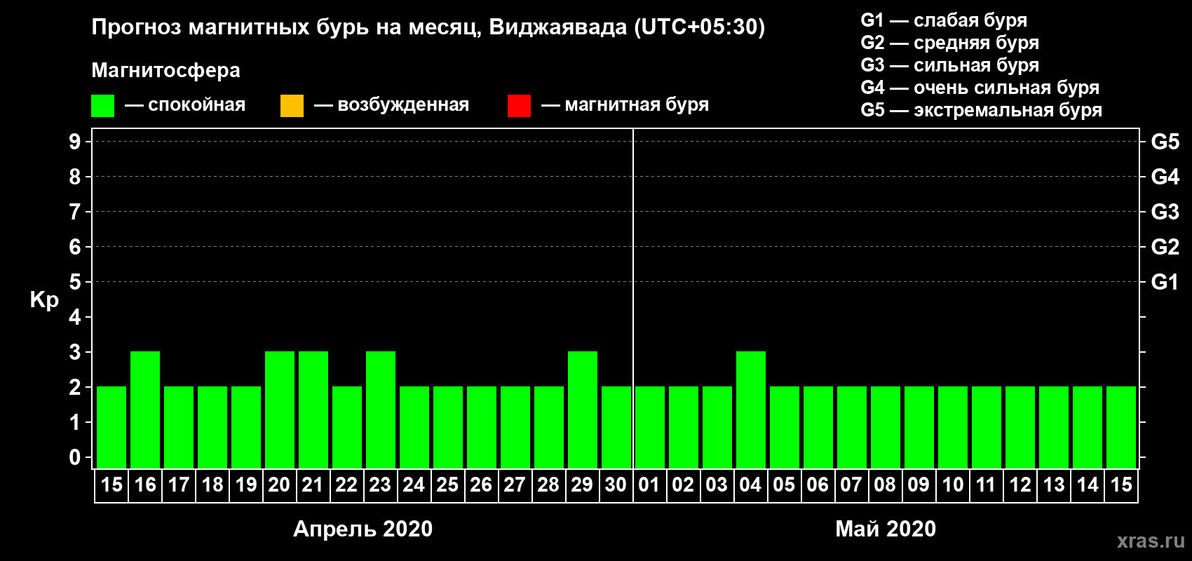 Прогноз магнитных бурь в Виджаяваде — 15 апреля 2020 года