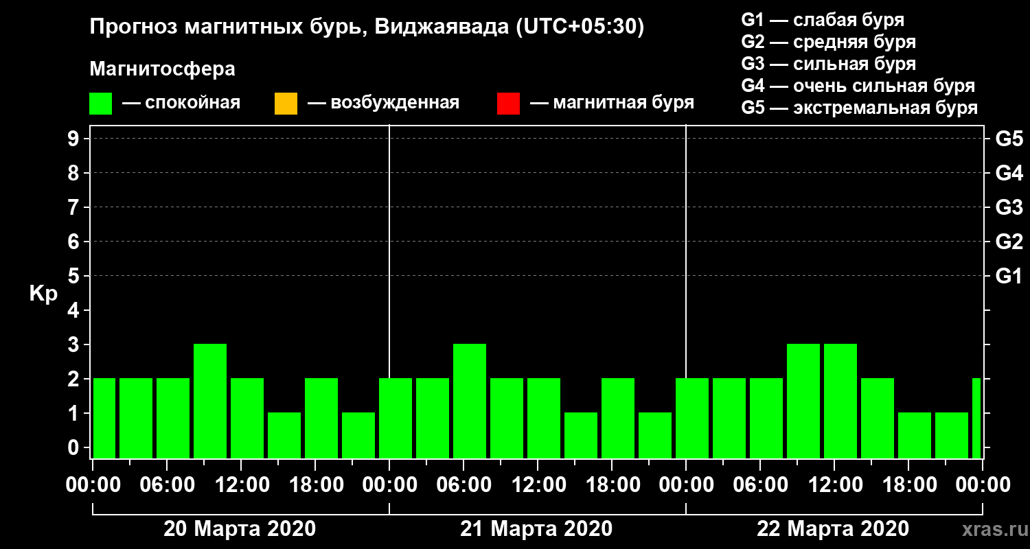 Прогноз магнитных бурь в Виджаяваде — 20 марта 2020 года