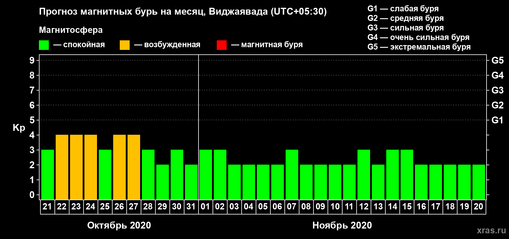 Прогноз магнитных бурь в Виджаяваде — 21 октября 2020 года