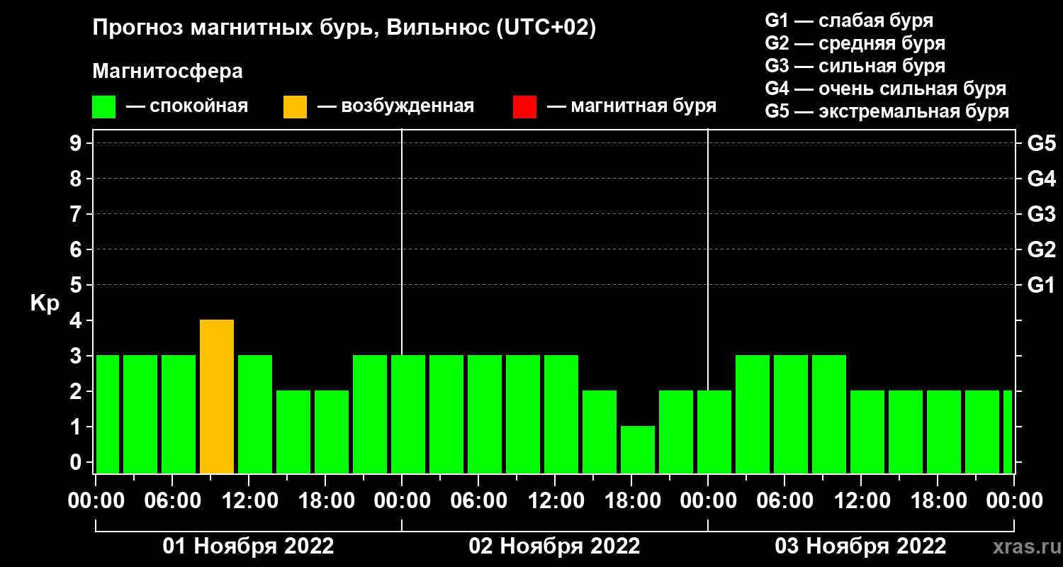 Прогноз магнитных бурь в Вильнюсе — 1 ноября 2022 года