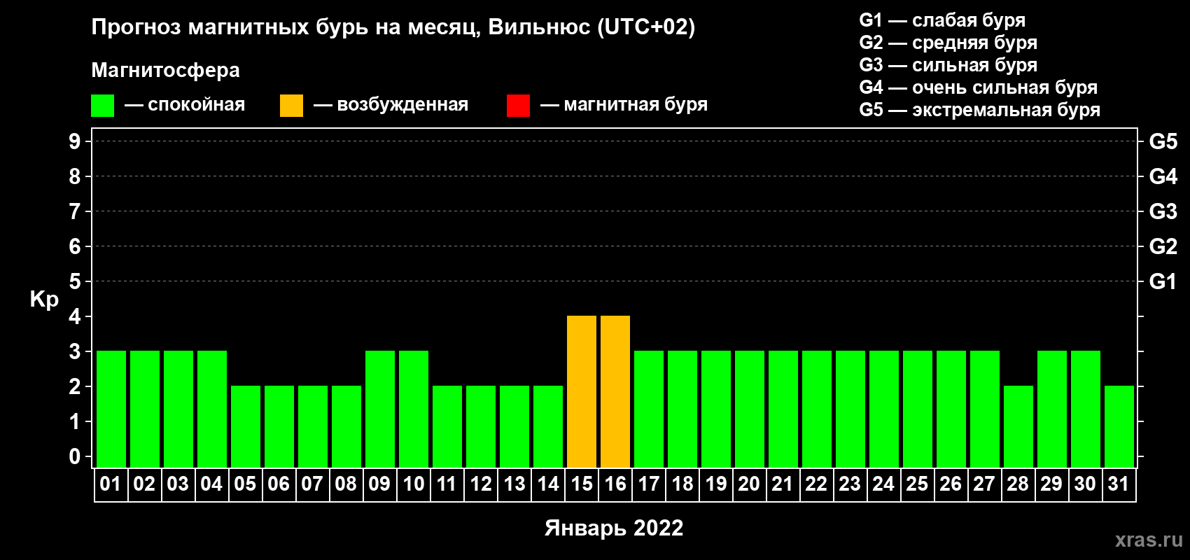 Прогноз магнитных бурь в Вильнюсе — 1 января 2022 года