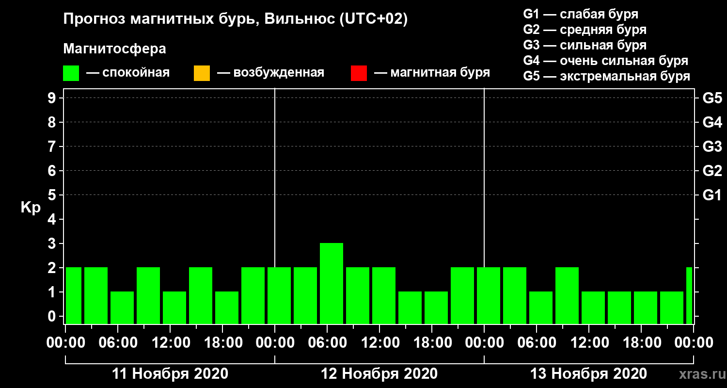Прогноз магнитных бурь в Вильнюсе — 11 ноября 2020 года