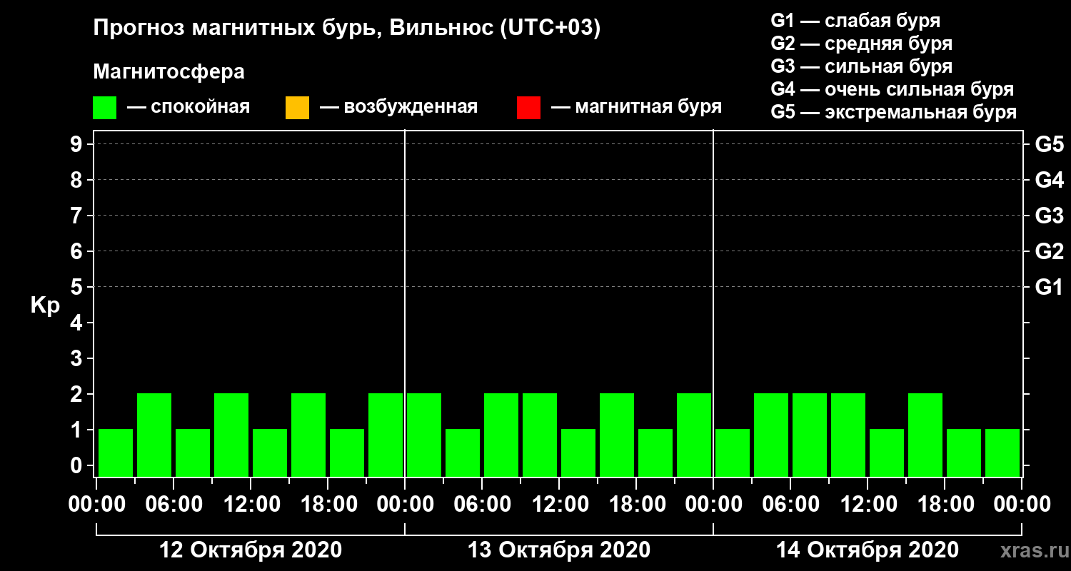 Прогноз магнитных бурь в Вильнюсе — 12 октября 2020 года